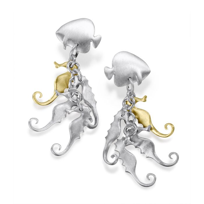 Description / 18ct Gold & Silver Seahorse Drop Earrings