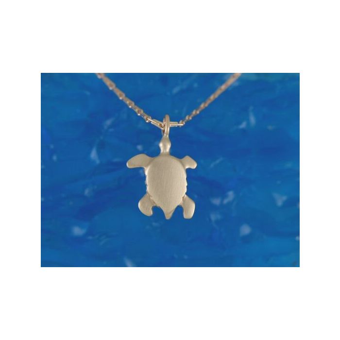 This solid 9ct gold satin finished Small Turtle Pendant is combined with a hayseed chain.