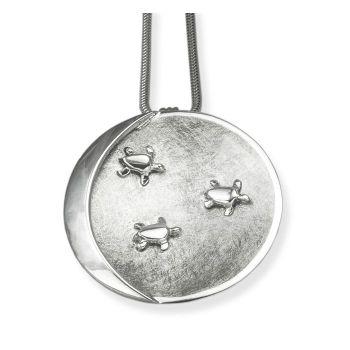 Silver Hatchling Turtle Round Pendant on Snake Chain