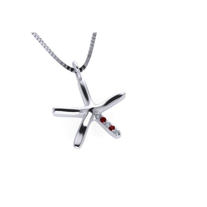 Highly polished solid 18ct white gold starfish pendant set with three diamonds and two rubies by Reef Jewelry