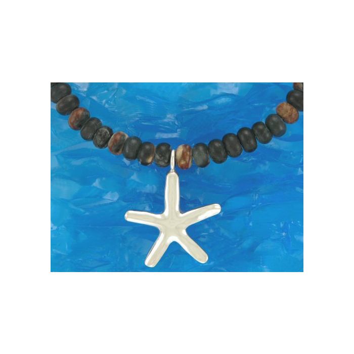 Solid Silver Large Starfish Pendant on Picasso Jasper Bead Necklace