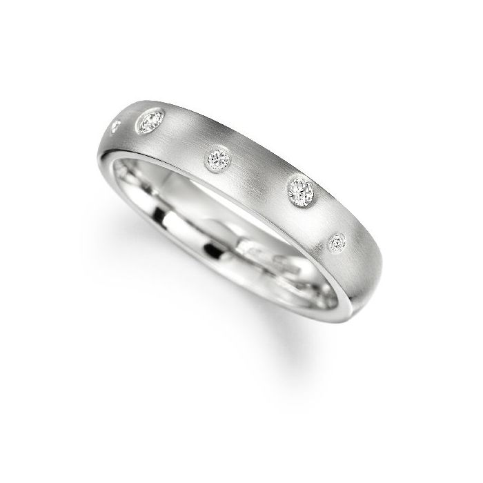 This palladium ring contains five diamonds of various sizes replicating rising bubbles. The natural beauty of palladium enhances the brilliance of the diamonds as it is naturally and untarnishingly white.