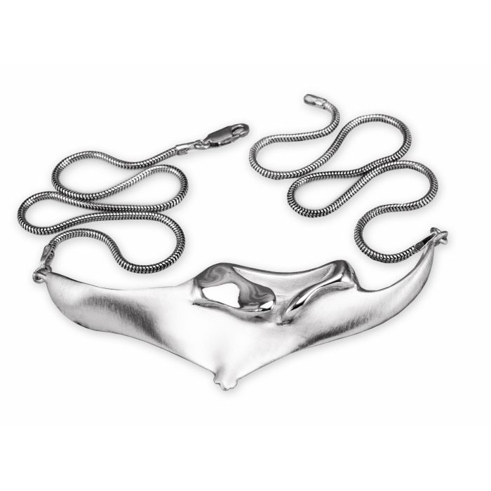 The grace and serenity of the manta is captured in this delicate, yet solid, pendant