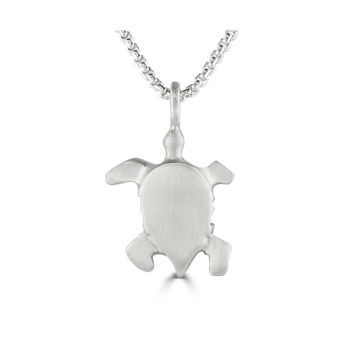 Satin finished solid silver small turtle pendant handmade by Reef Jewellery