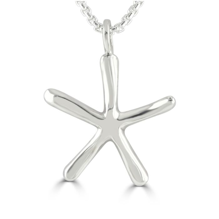 A highly polished, deliate and sophisticated solid silver starfish pendant handmade by Reef Jewellery